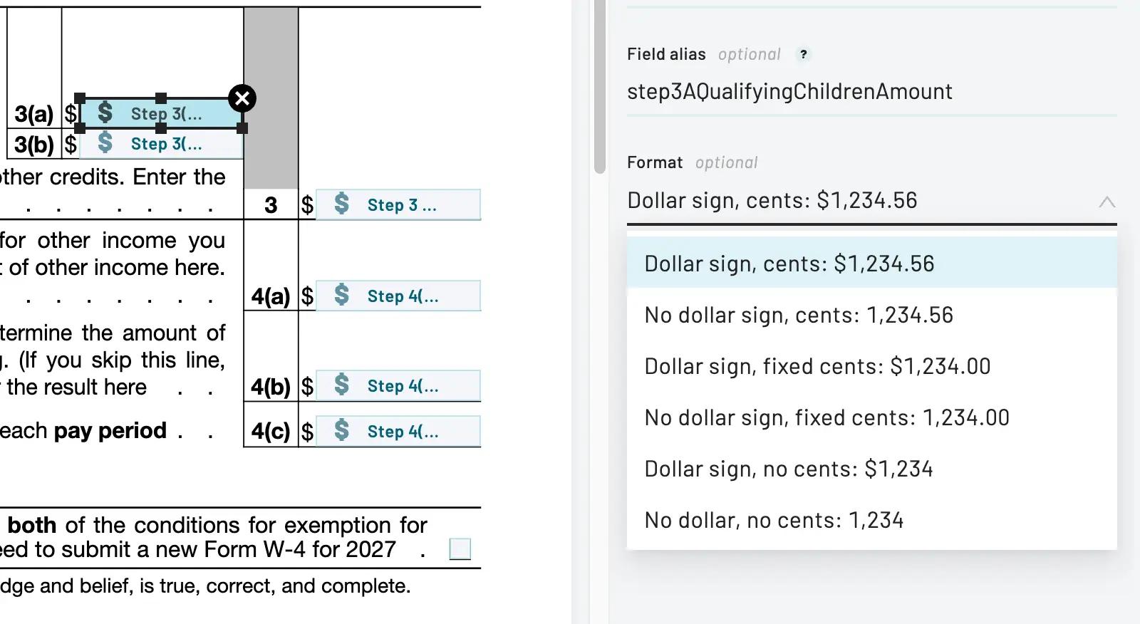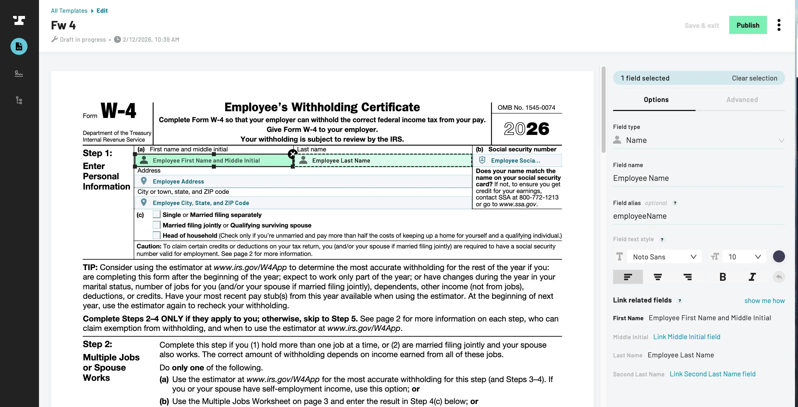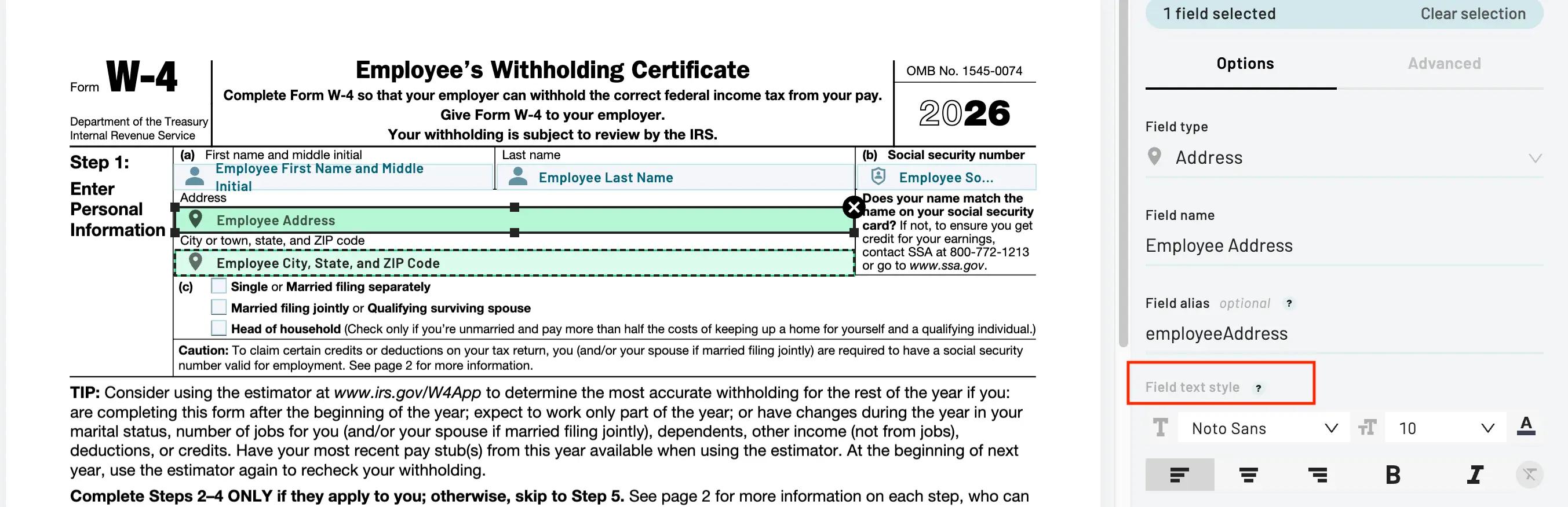 On this page, upload a template, such as a W4.