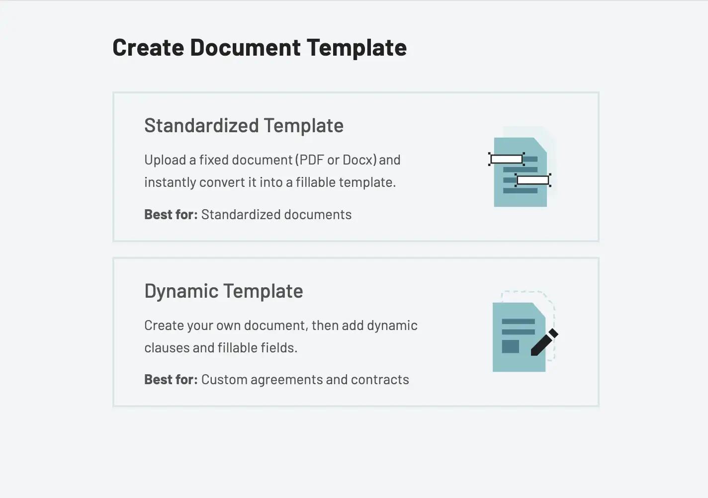 On your dashboard, click the + Create template item to upload a new PDF Template and on the next screen click "Standardized Template".