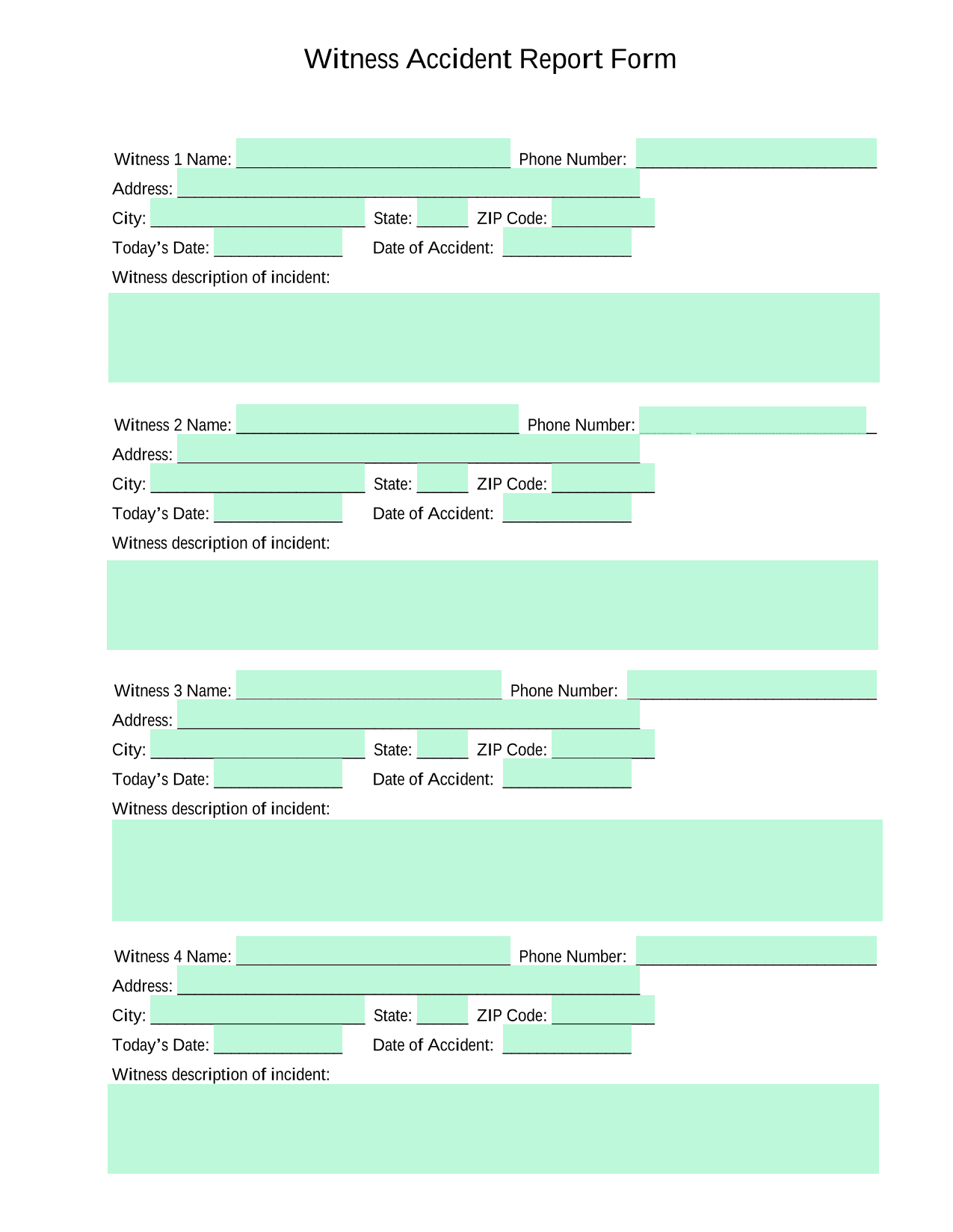 Start filling Witness Accident Report Form for free
