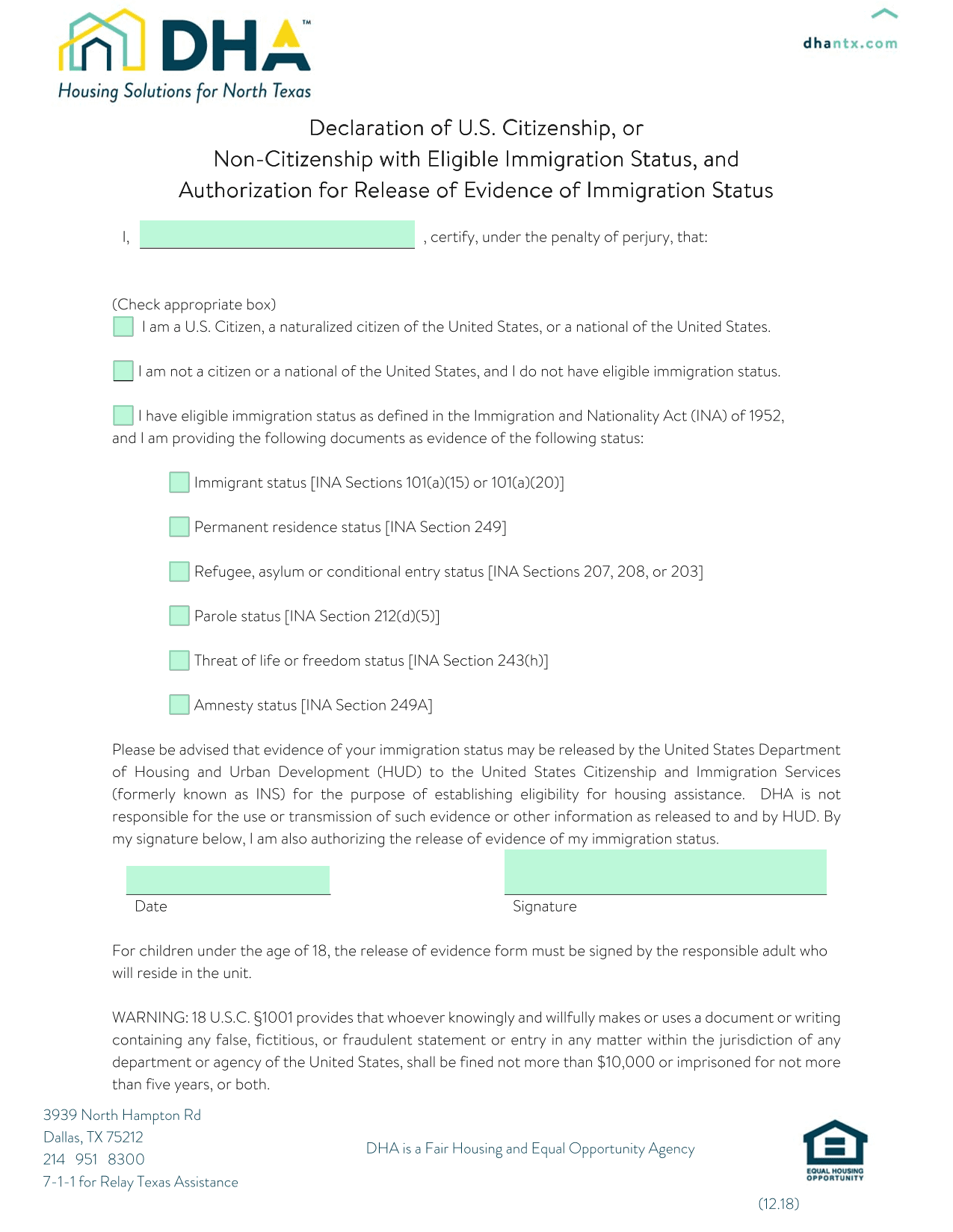 Start filling Declaration Of U.S. Citizenship, Or Non Citizenship With Eligible Immigration Status, And Authorizat for free