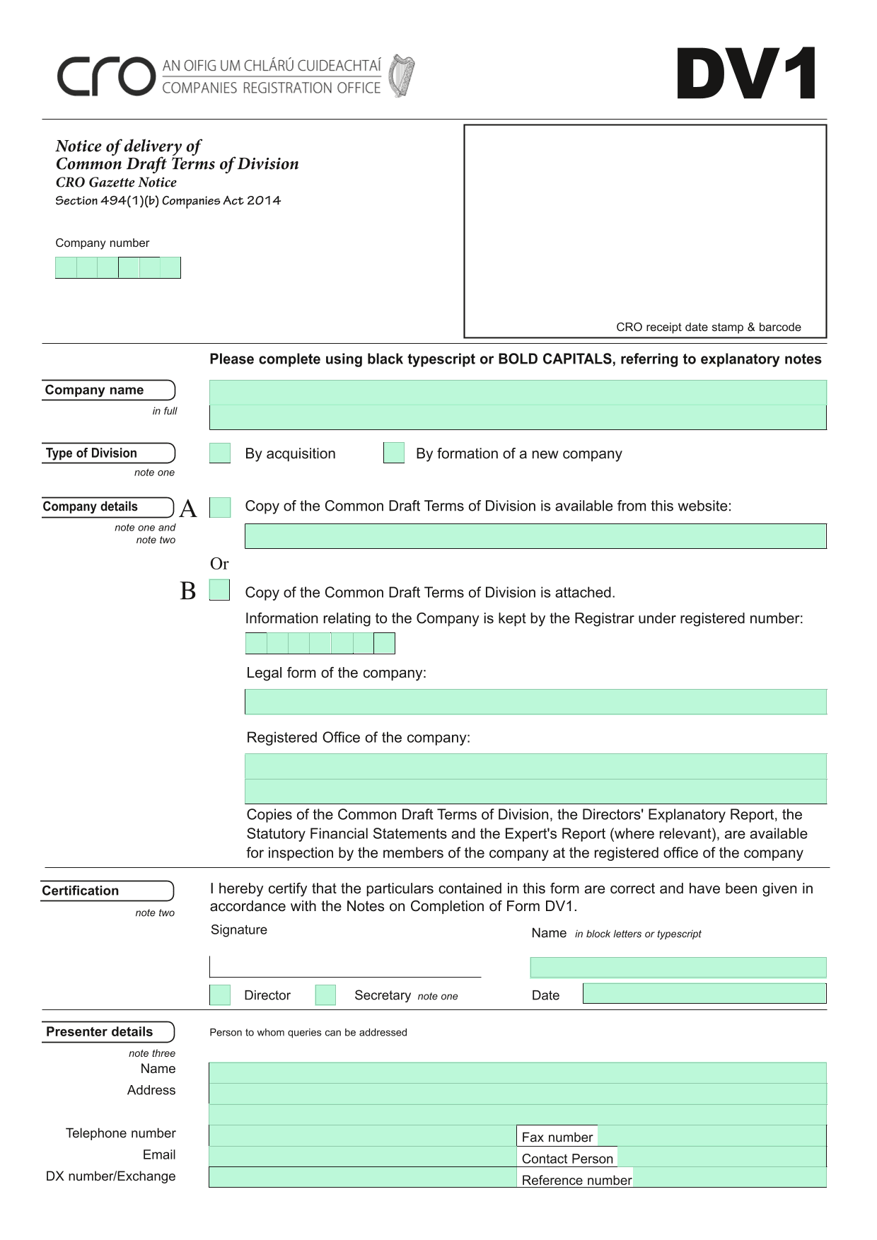 Start filling Notice Of Delivery Of Common Draft Terms Of Division DV1 for free