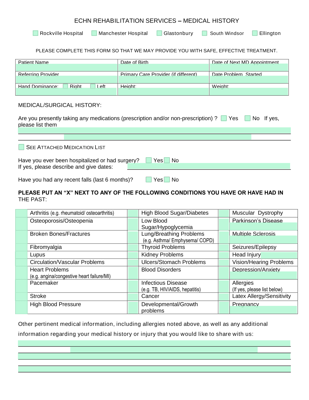 ECHN REHABILITATION SERVICES MEDICAL HISTORY