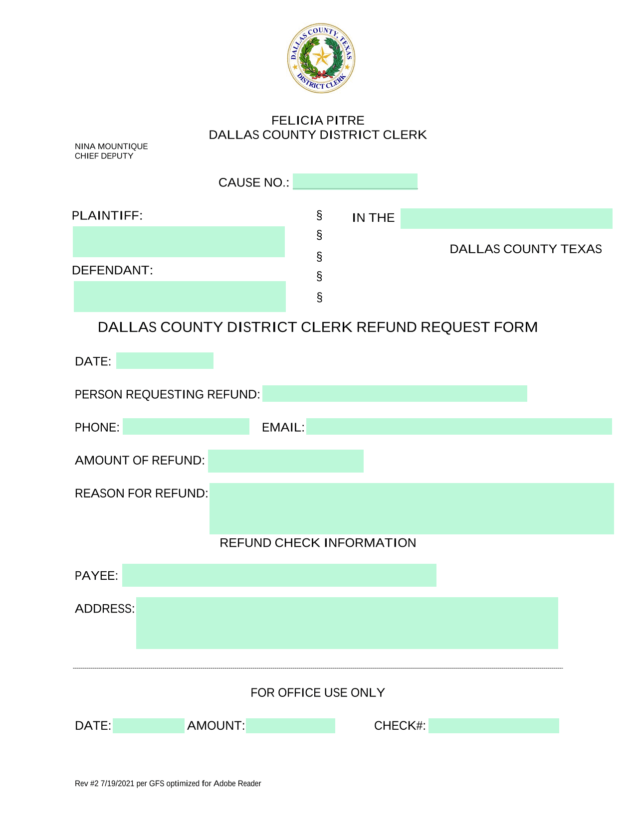 Start filling Dallas County District Clerk Refund Request Form for free
