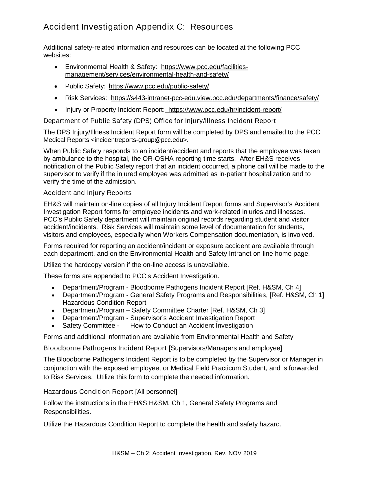Guide for reporting and documenting workplace accidents, incidents, and injuries at Portland Community College