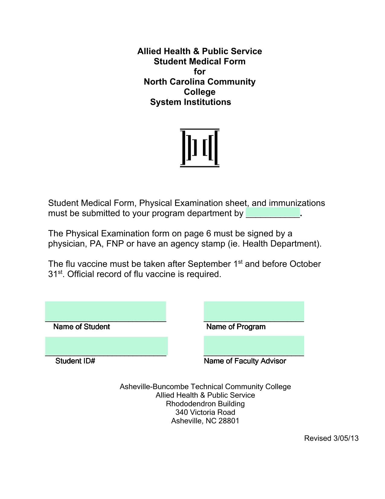 Allied Health Public Service Student Medical Form